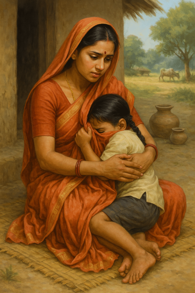 🟢 उत्तर: माता का आँचल सुरक्षा, प्रेम, ममता और शांति का प्रतीक है।