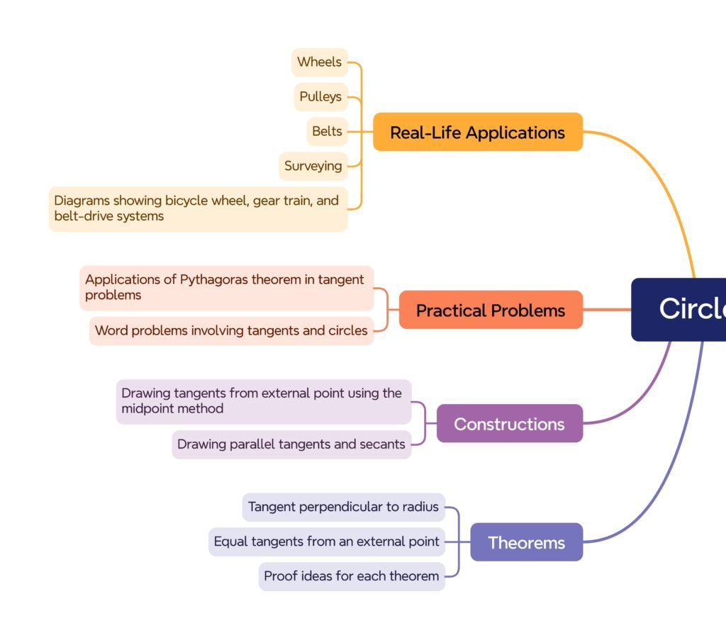 🟡 This chapter focuses on tangents, their properties, and related theorems.