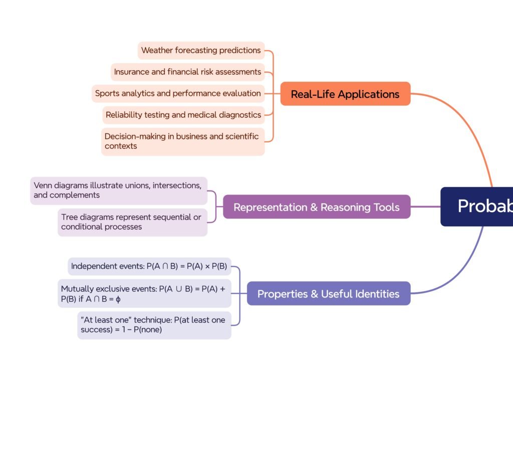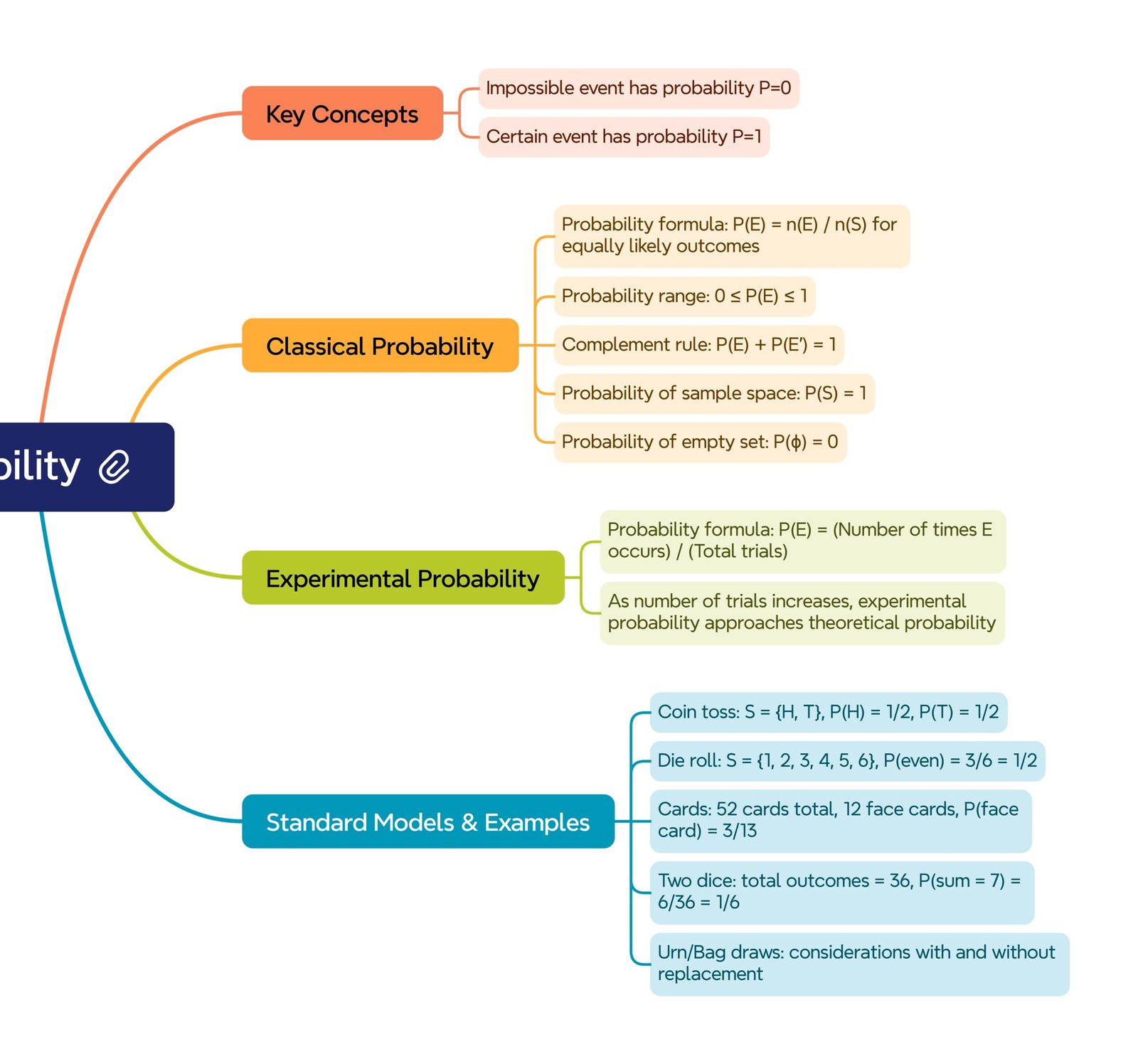 💡 Example: Tossing a die, probability of even number: n(E)=3 (2,4,6), n(S)=6.