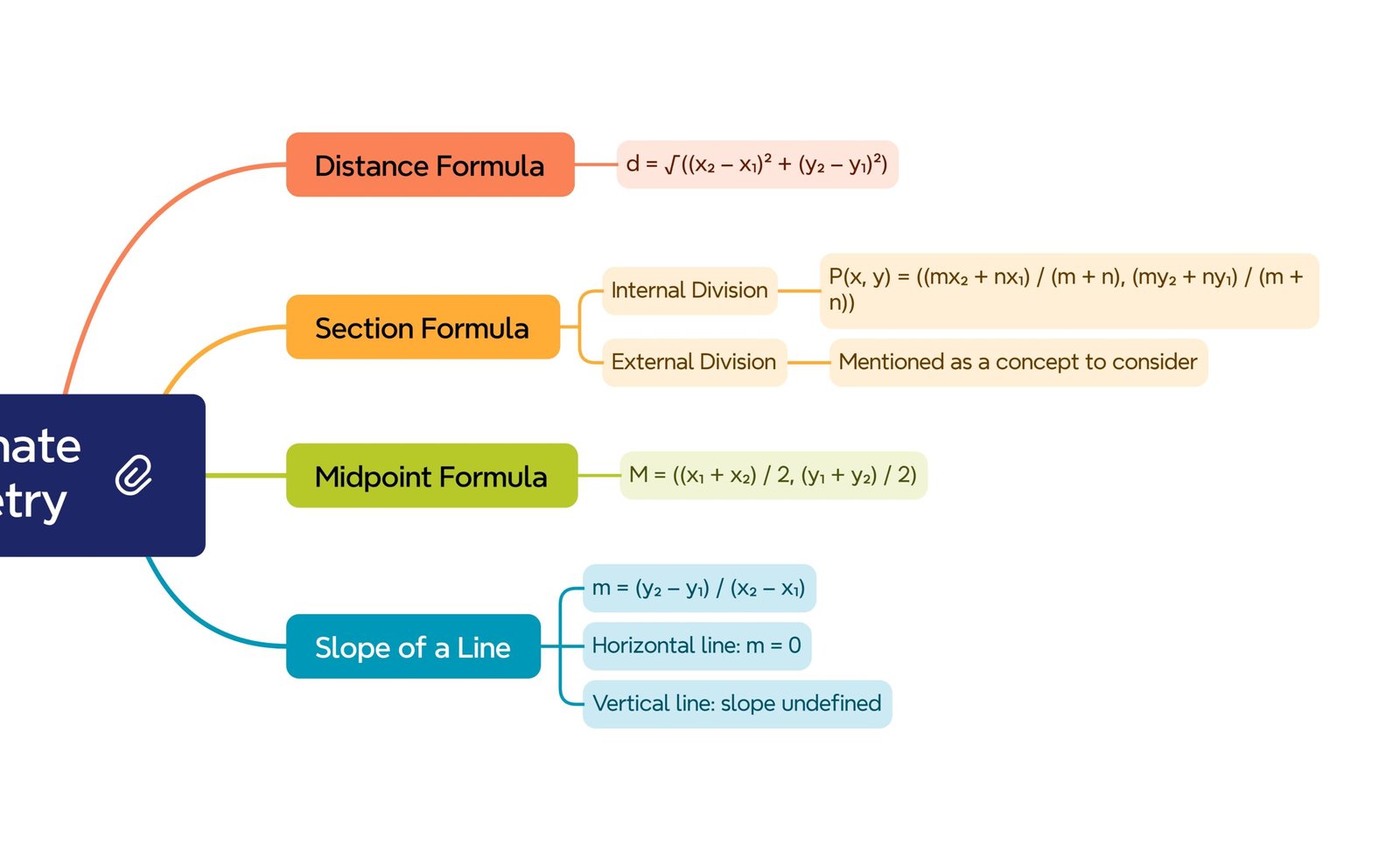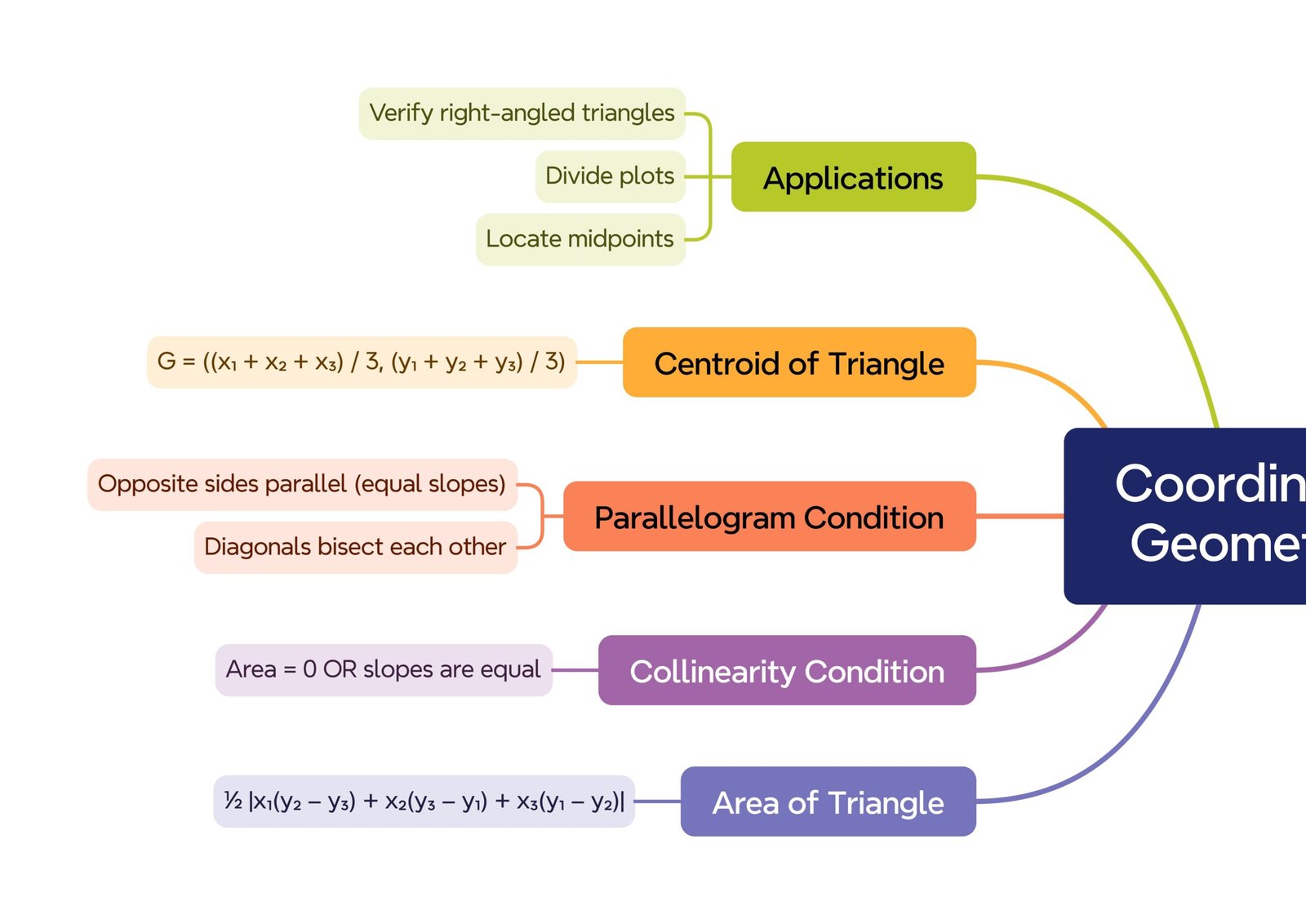 🟡 This chapter focuses on four essential tools: the distance formula, section formula (including the midpoint), the centroid formula, and the area of a triangle.