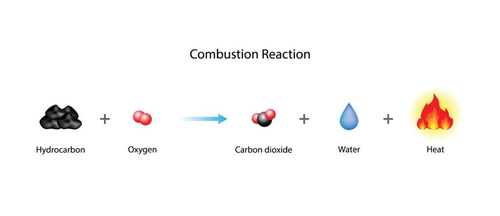 ➡️ Carbon compounds burn in air (O₂) to produce CO₂, water, and heat.