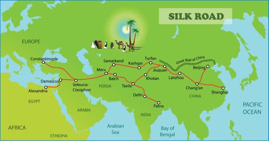 🔵 Ancient Silk Routes → trade + ideas + culture.