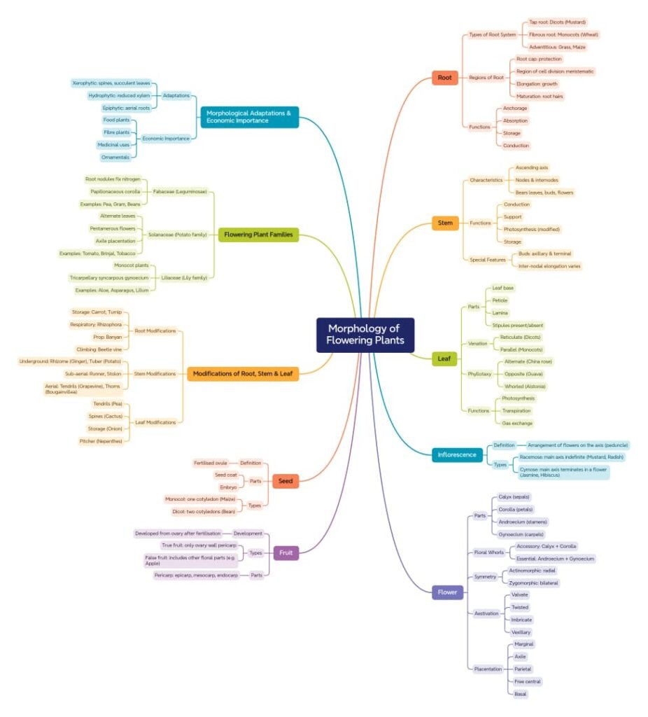 In flowering plants (angiosperms), it focuses on the visible organs — root, stem, leaf, flower, fruit, and seed 🌸.