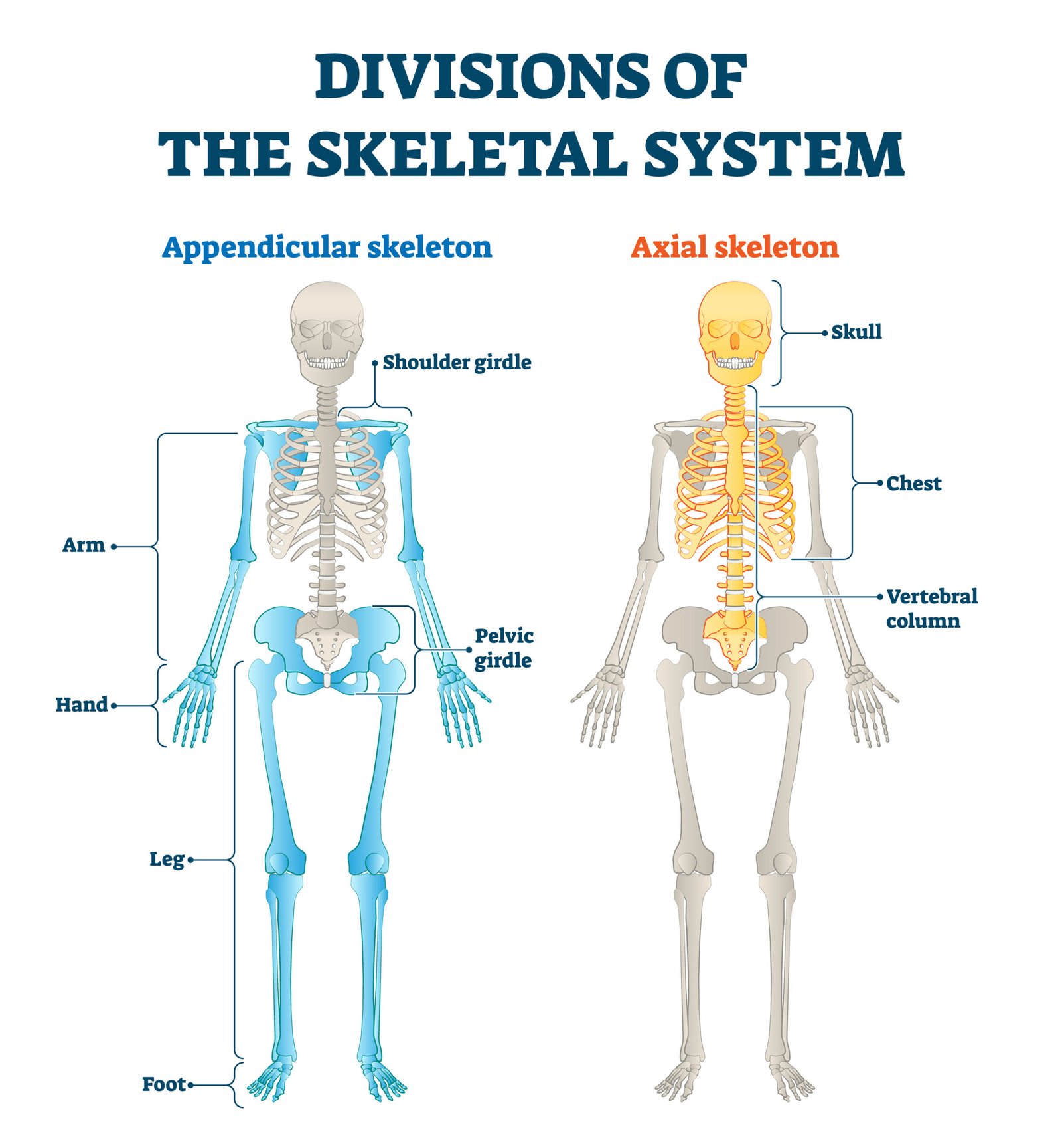 मानव कंकाल दो भागों में बाँटा जाता है —