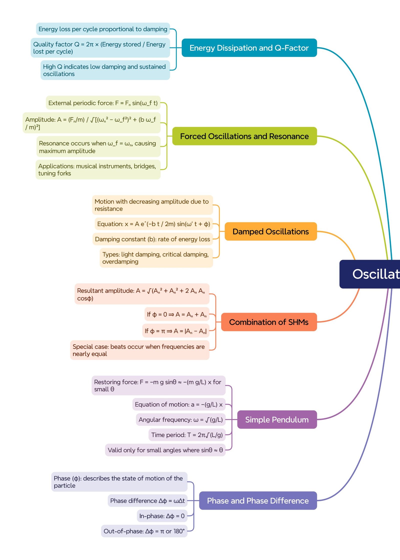 🔴 The study of oscillations helps in understanding wave motion, resonance, alternating current circuits, and molecular vibrations.