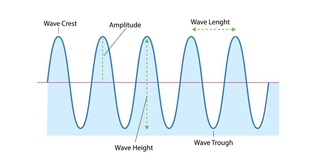 Frequency (ν): Number of oscillations per second → ν = 1/T.