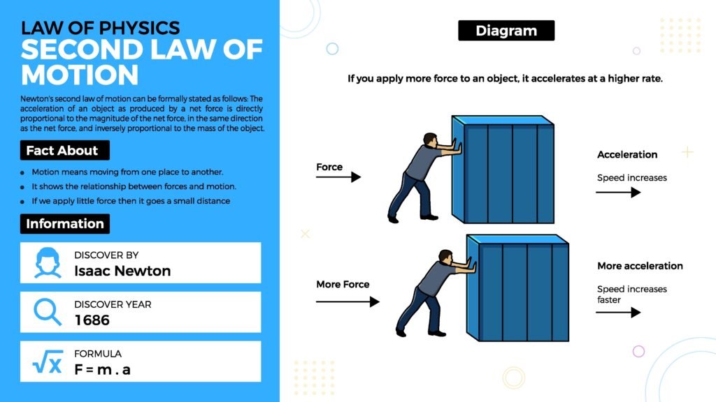 🟡 दूसरा नियम – बल और त्वरण का नियम (Law of Force and Acceleration)