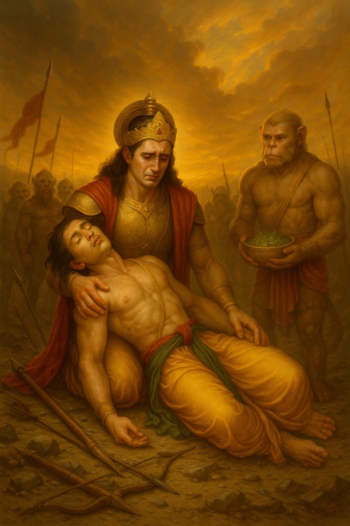 🟠 आधी रात बीत गई, हनुमान नहीं लौटे; राम लक्ष्मण को उठाकर हृदय से लगाते हैं।