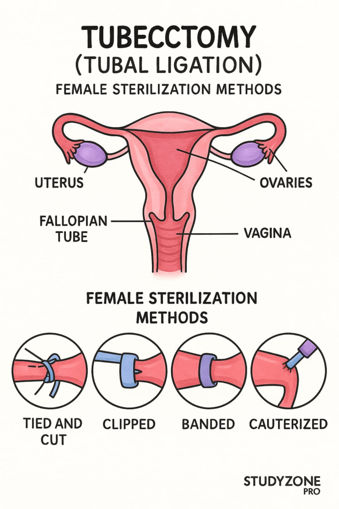 🔸 Tubectomy – removal/blocking of fallopian tubes in females
