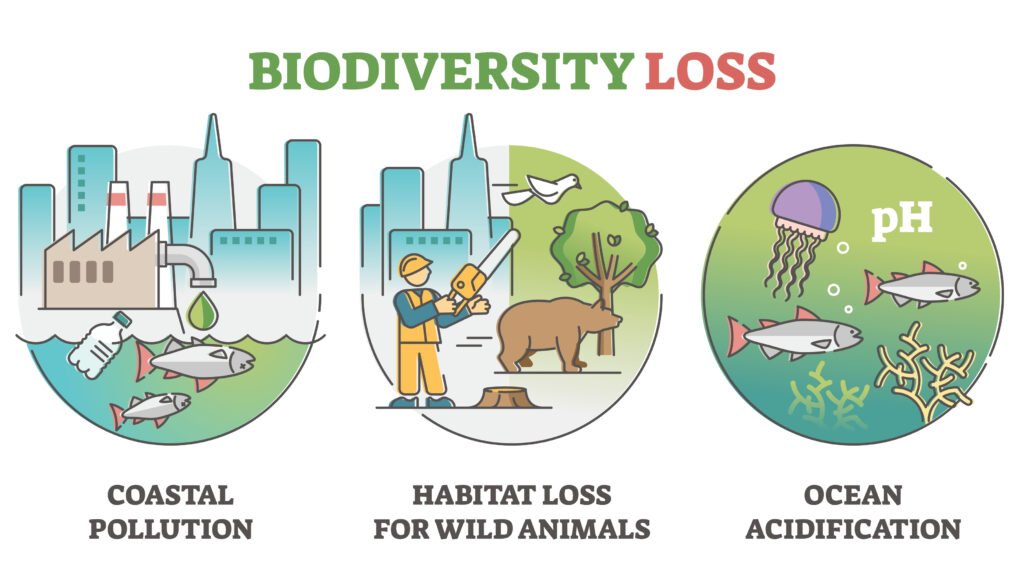 1️⃣ वासस्थान विनाश – वन कटाई, शहरीकरण।