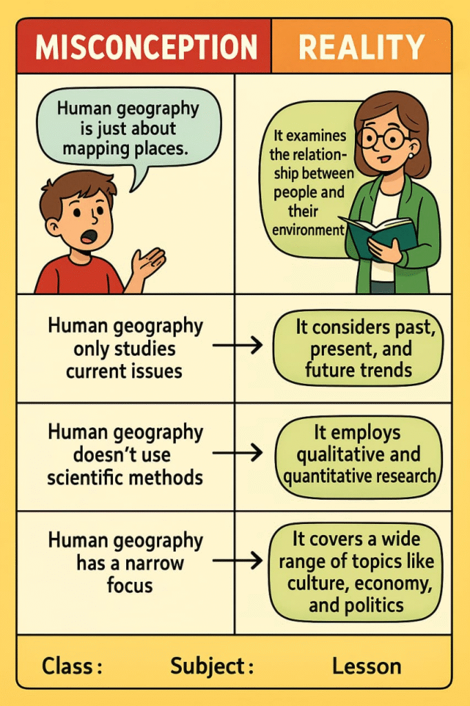 🌿 Human Geography is fundamentally about understanding the spatial organisation of human activities and how people relate to their physical environment. It studies the earth from the perspective of human existence.