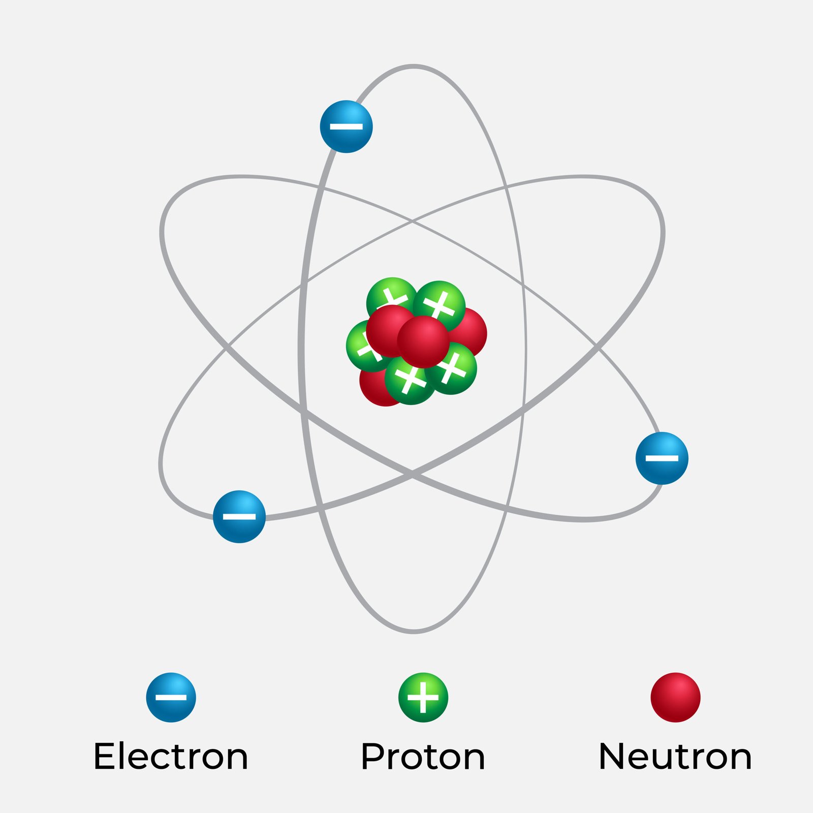 This nucleus contains protons (positively charged) and neutrons (neutral), collectively called nucleons.