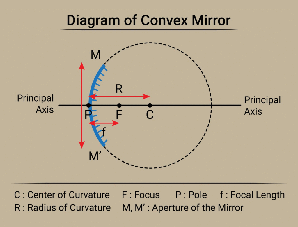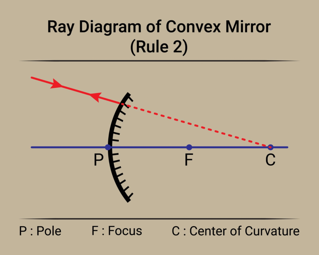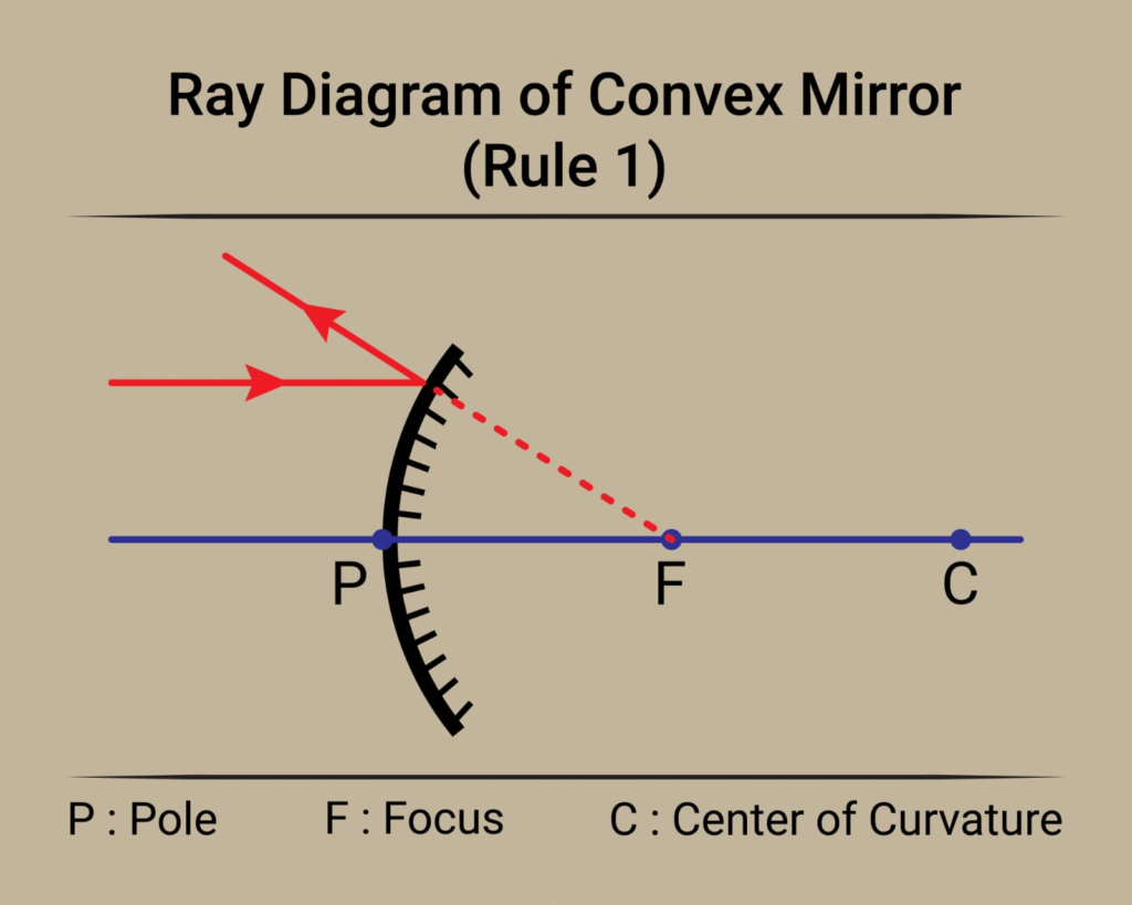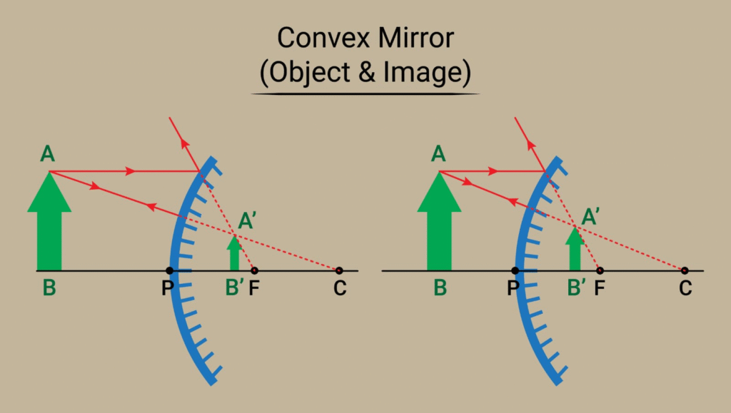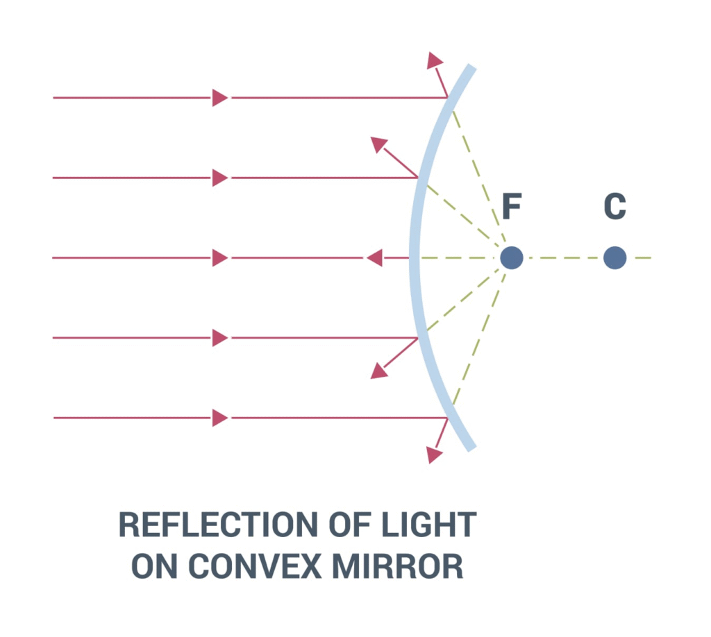 ✔️ उत्तल दर्पण (Convex) – बाहर की सतह परावर्तक