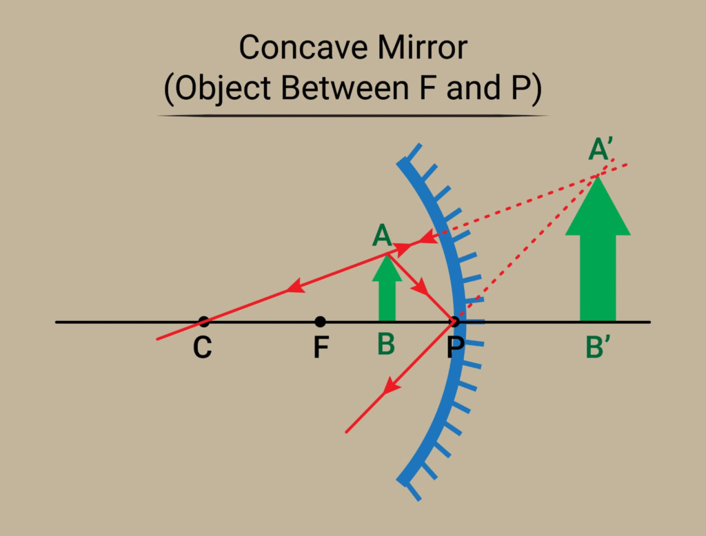 ✔️ अवतल दर्पण (Concave) – अंदर की सतह परावर्तक