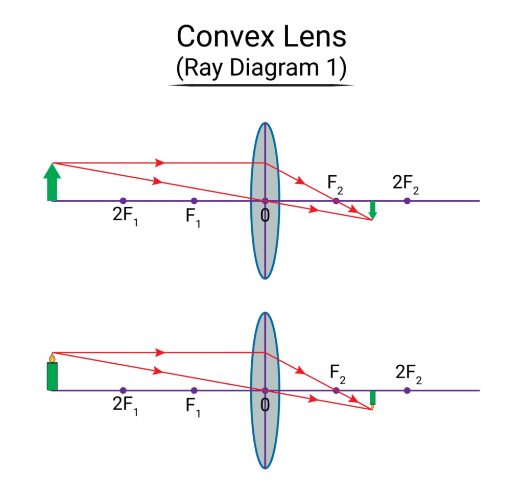 ✔️ उत्तल लेंस (Convex) – मध्य मोटा, किनारे पतला