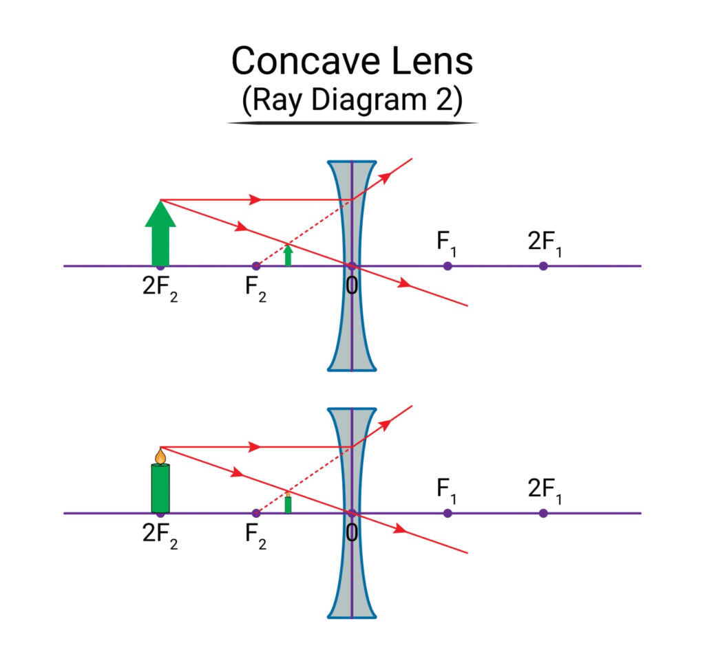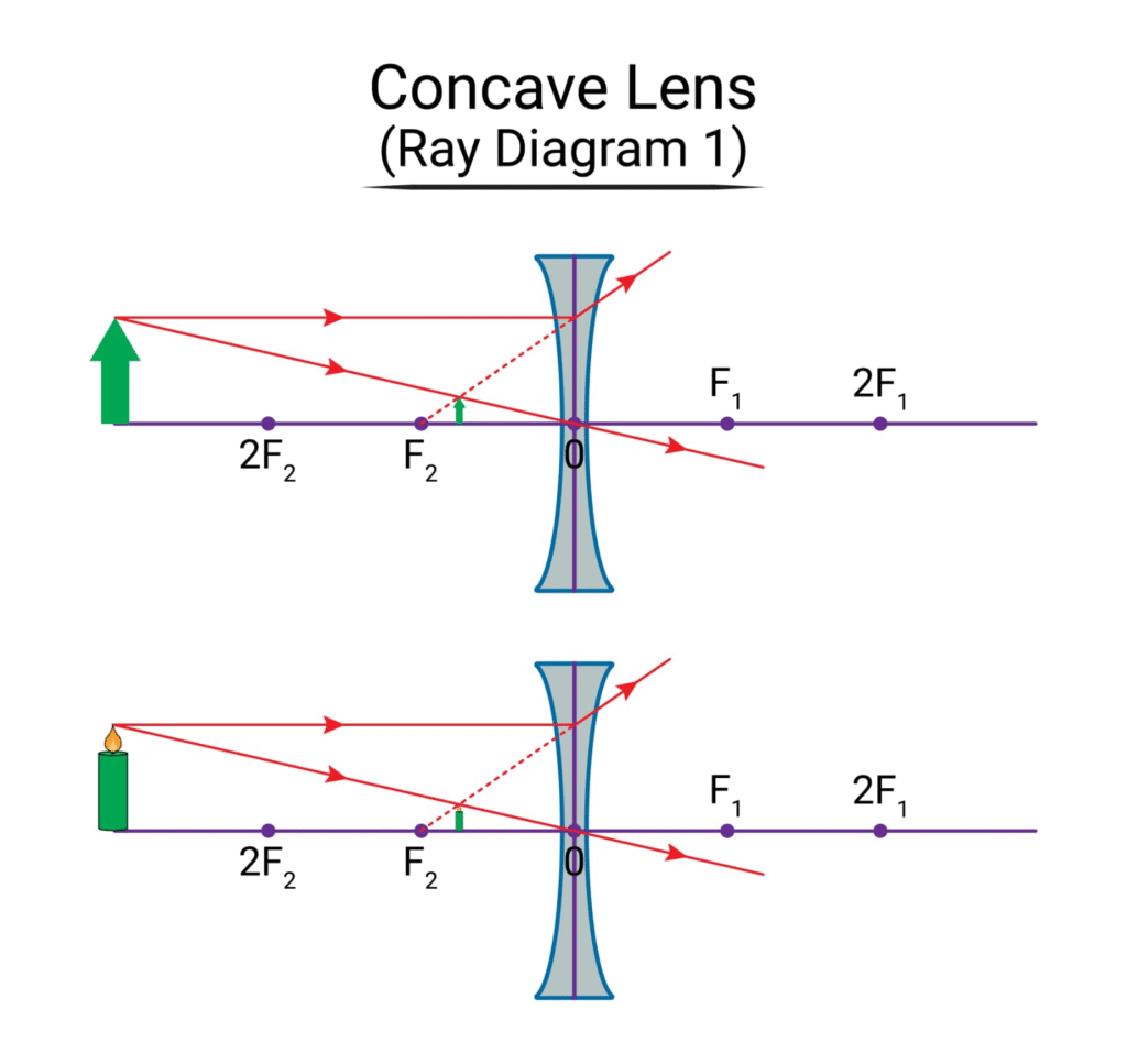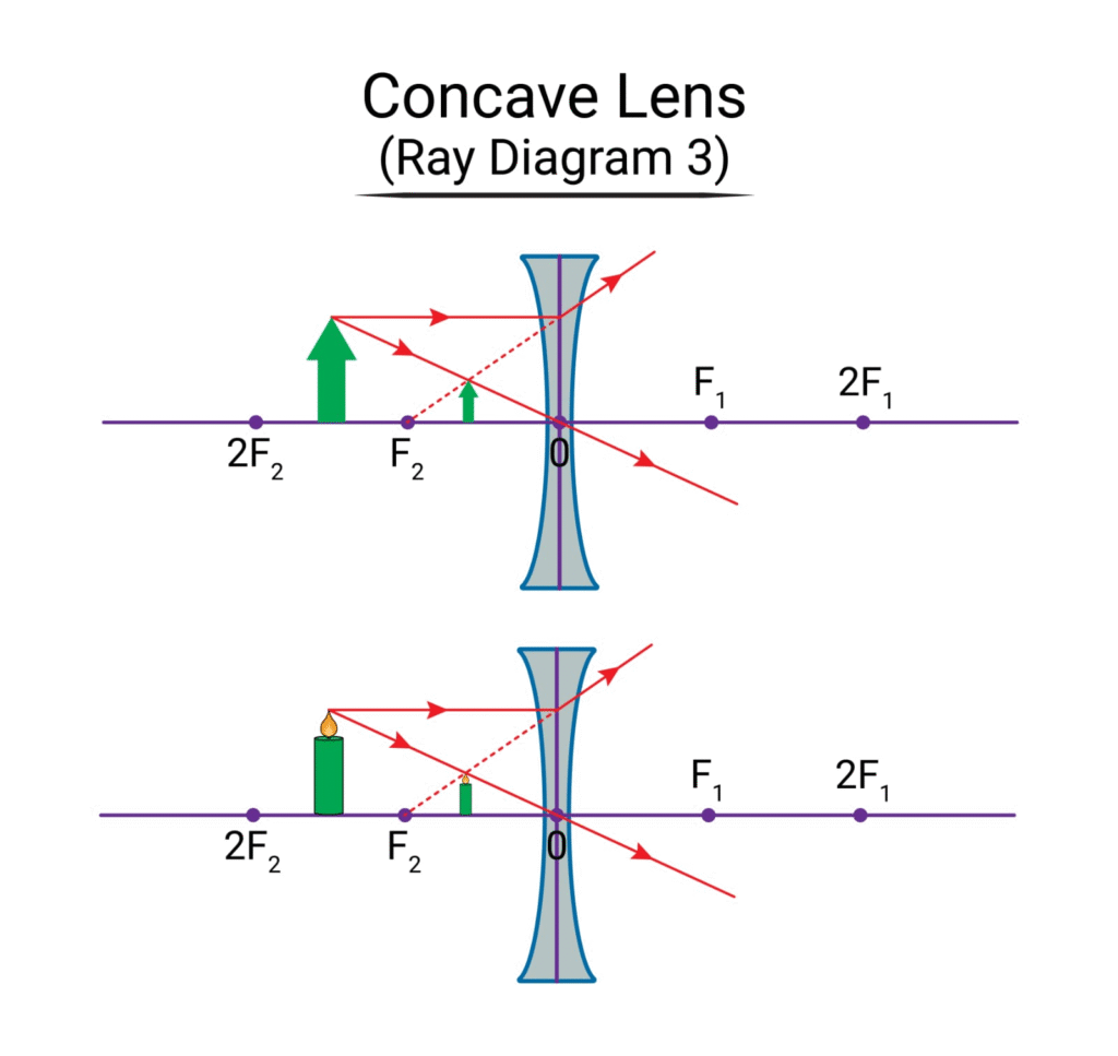 ➡️ अवतल लेंस के लिए f ऋणात्मक