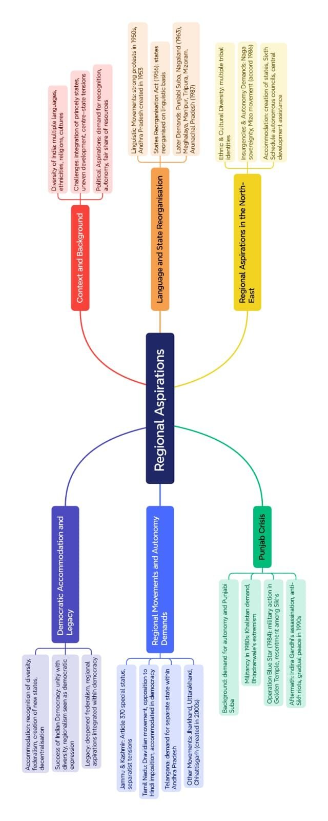 🔵 Question 21: Discuss the reasons behind the rise of regional aspirations in India.
