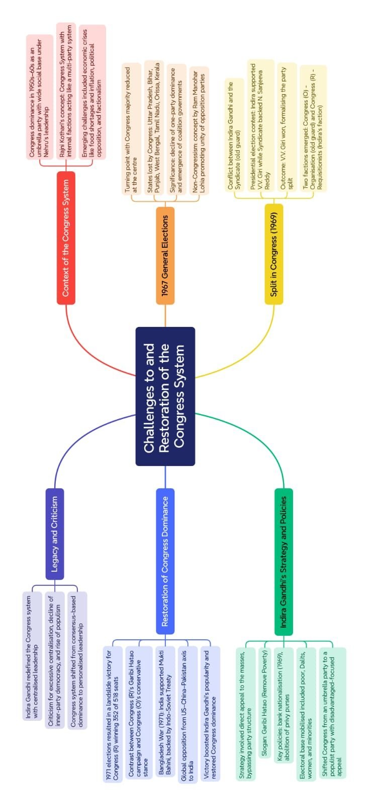 ✔ Ideological difference: Indira’s socialist tilt vs Syndicate’s traditional approach.
