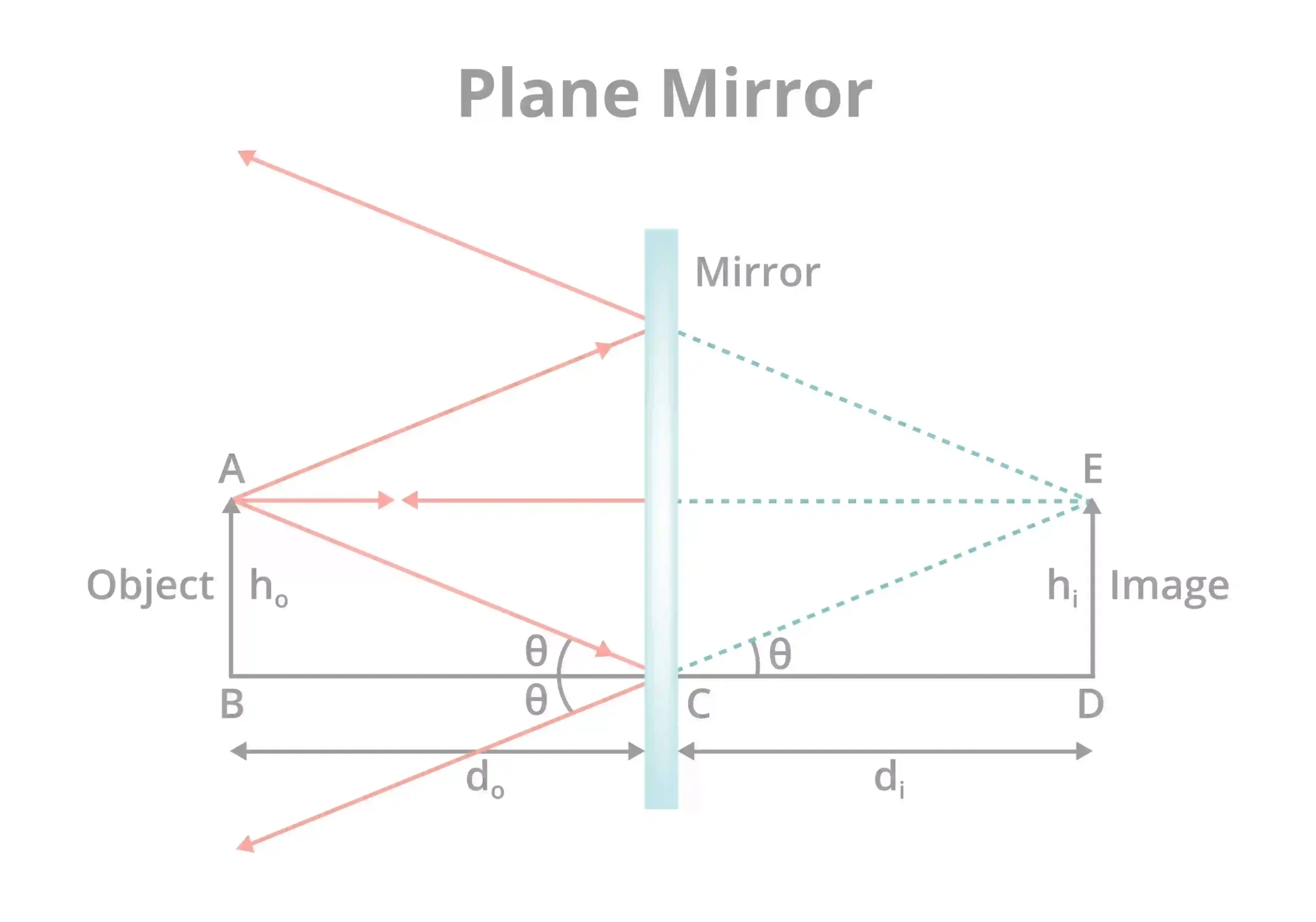 ⭐ समतल दर्पण समान आकार का प्रतिबिंब देता है