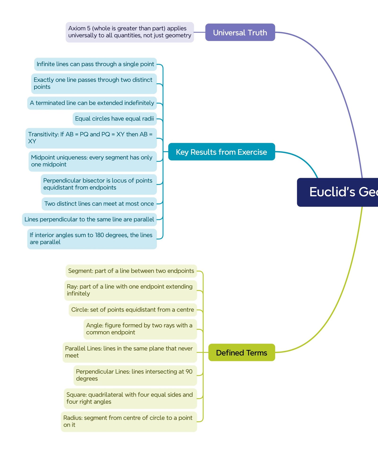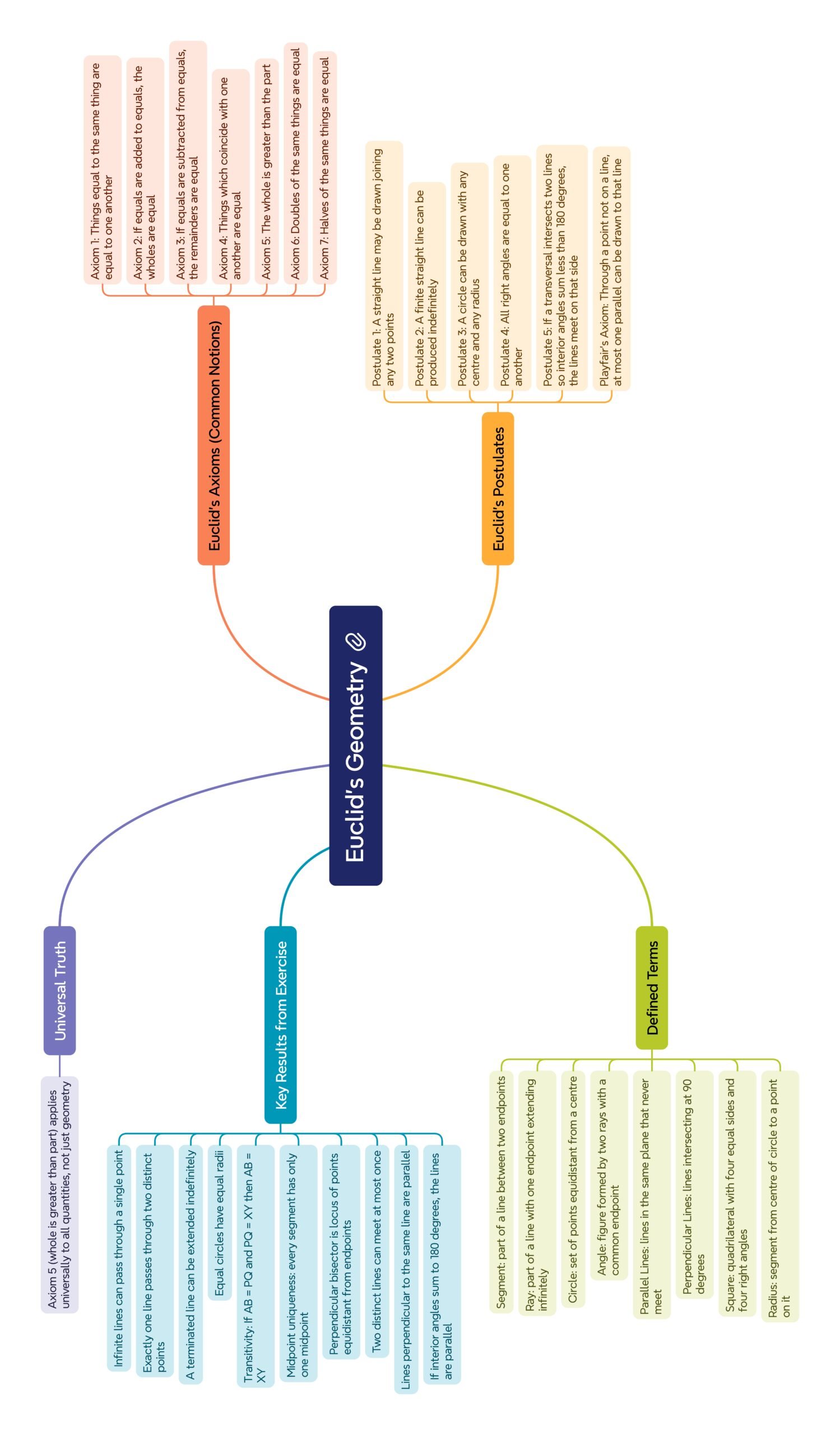 🔹 Theorems: statements logically deduced from axioms and postulates.