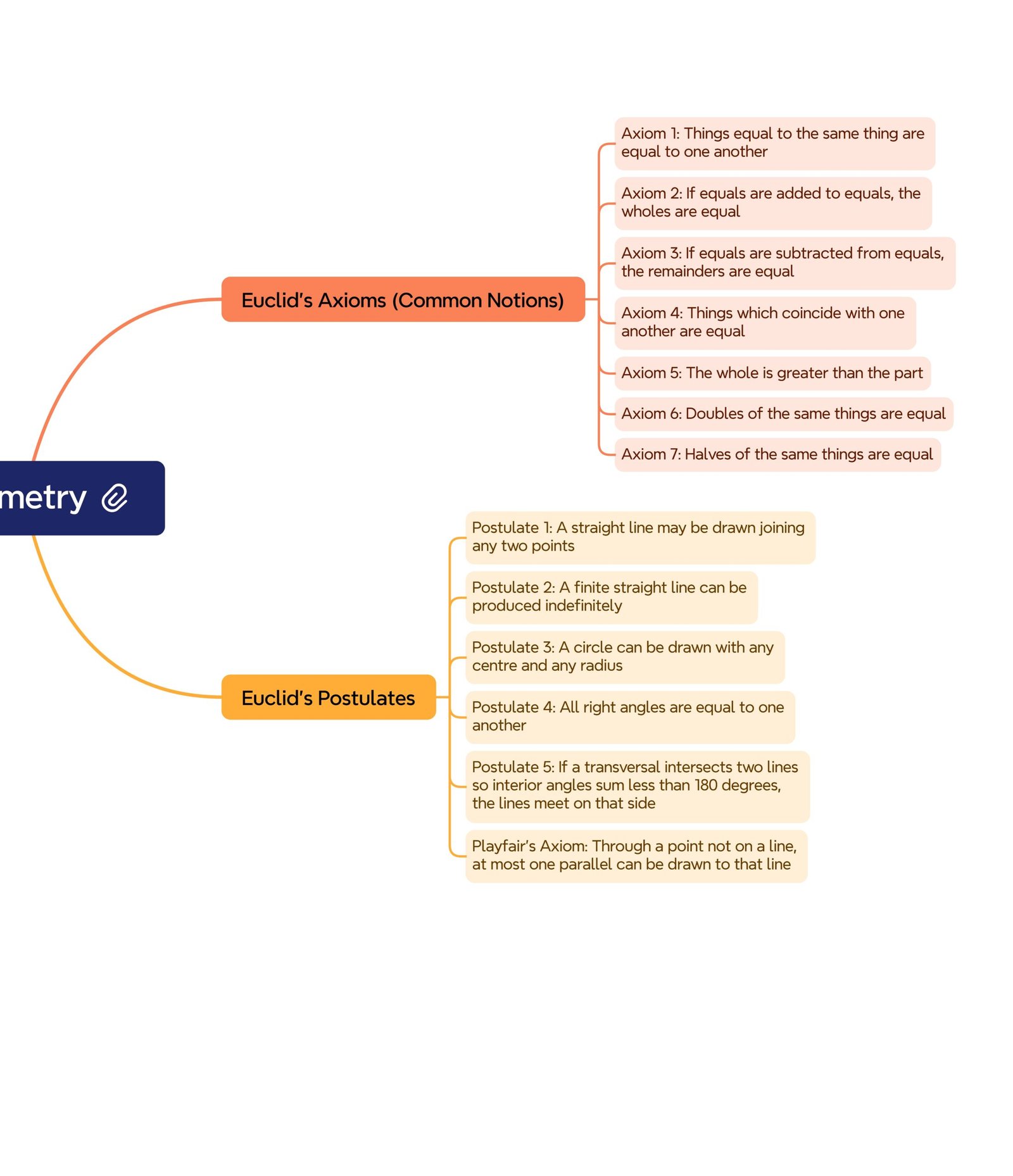 🔹 Postulates: truths specific to geometry.