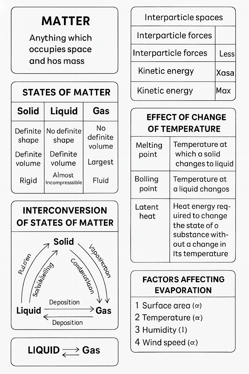 सब्लिमेशन (Sublimation) – ठोस पदार्थ का बिना द्रव बने सीधे गैस में परिवर्तित होना (जैसे कपूर)।